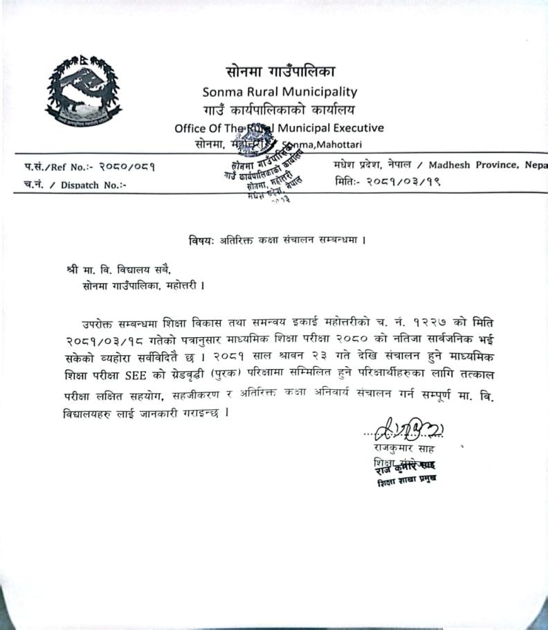 » अतिरिक्त कक्षा संचालन सम्बन्धमा