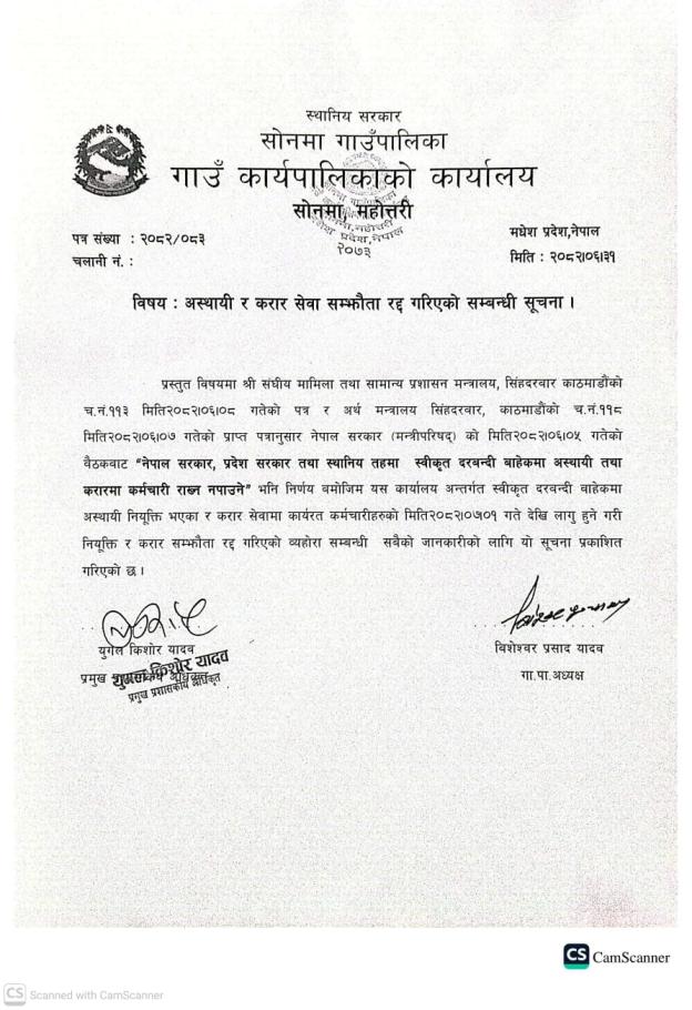 अस्थायी र करार सेवा रद्द गरिएको सम्बन्धमा l