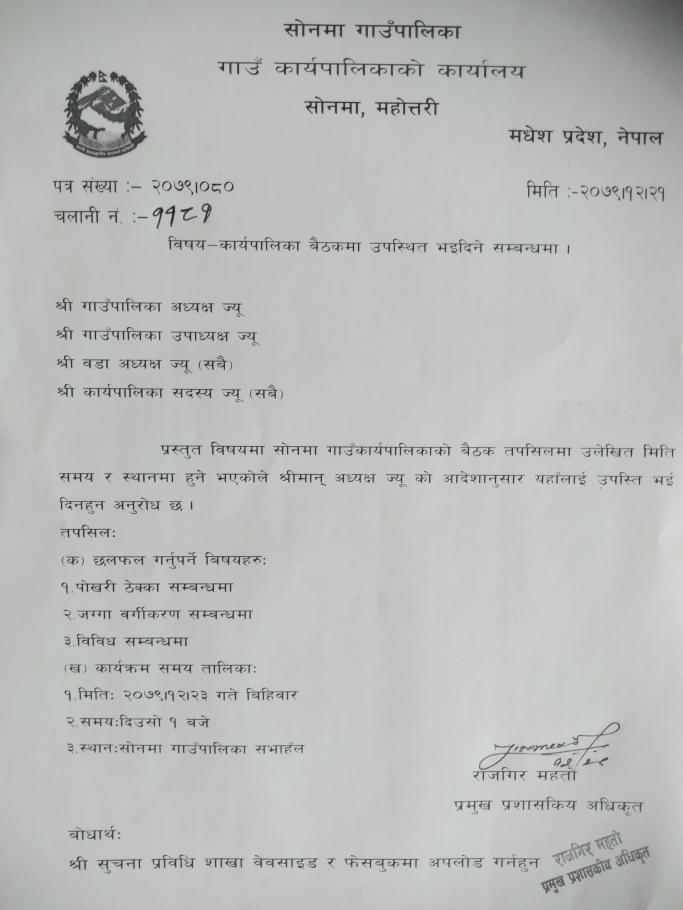 » कार्यपालिका बैठक सम्बन्धि सूचना