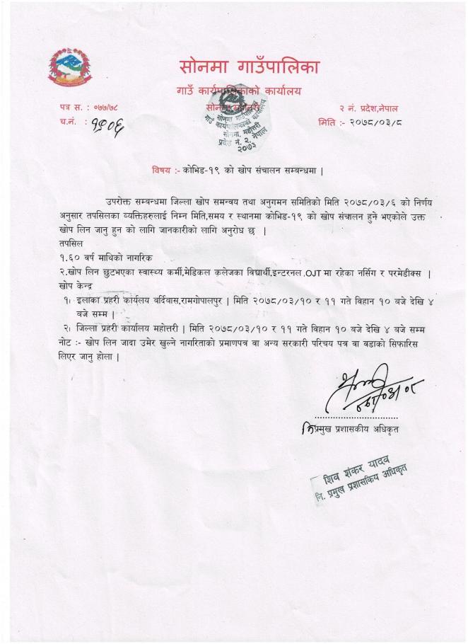 जिल्ला प्रशासन कार्यालय द्वारा गरिएको सुचना