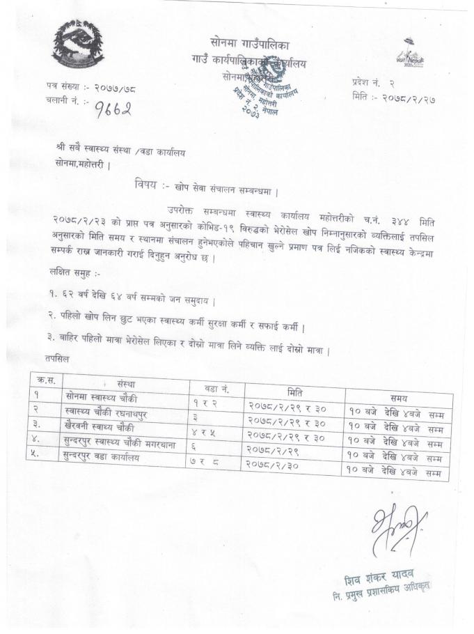 सूचना प्रसाशन गरिएको सम्बन्धमा |