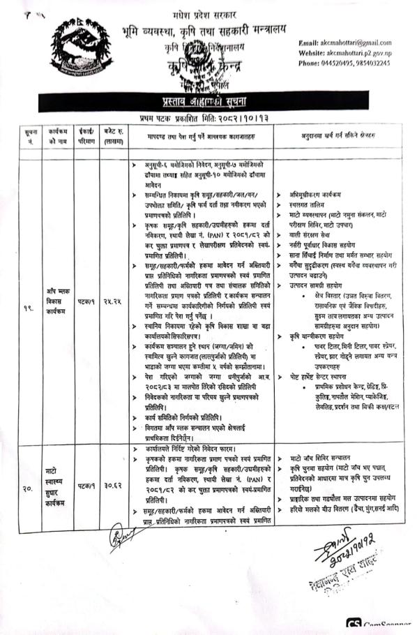 औषधि खरिद र ट्युबवेल जडानको आशयको सूचना