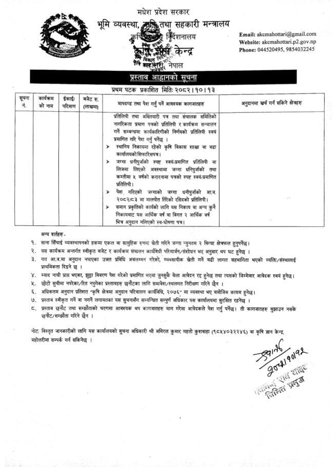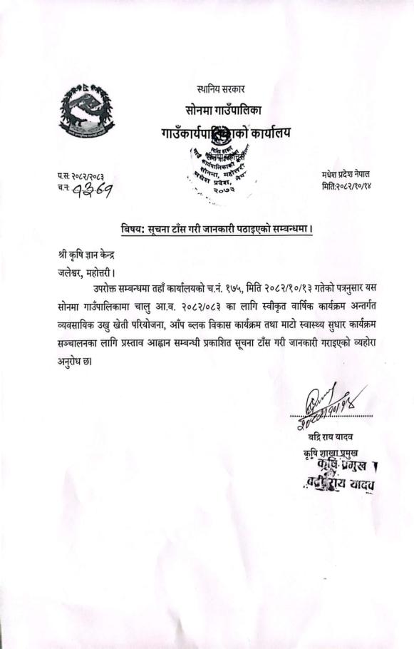 सूचना प्रसाशन गरिएको सम्बन्धमा |