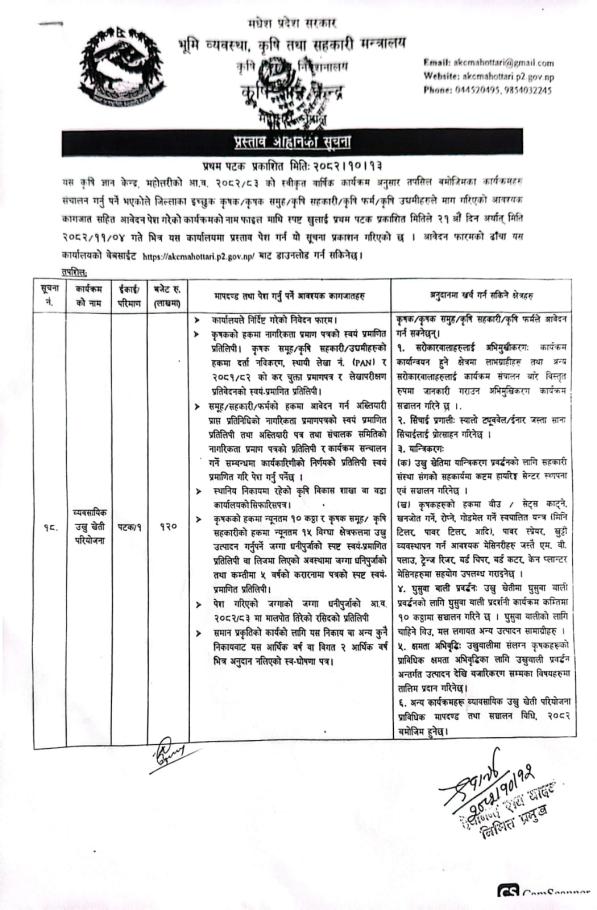 बोलपत्र स्वीकृत गर्ने आशयको सुचना |