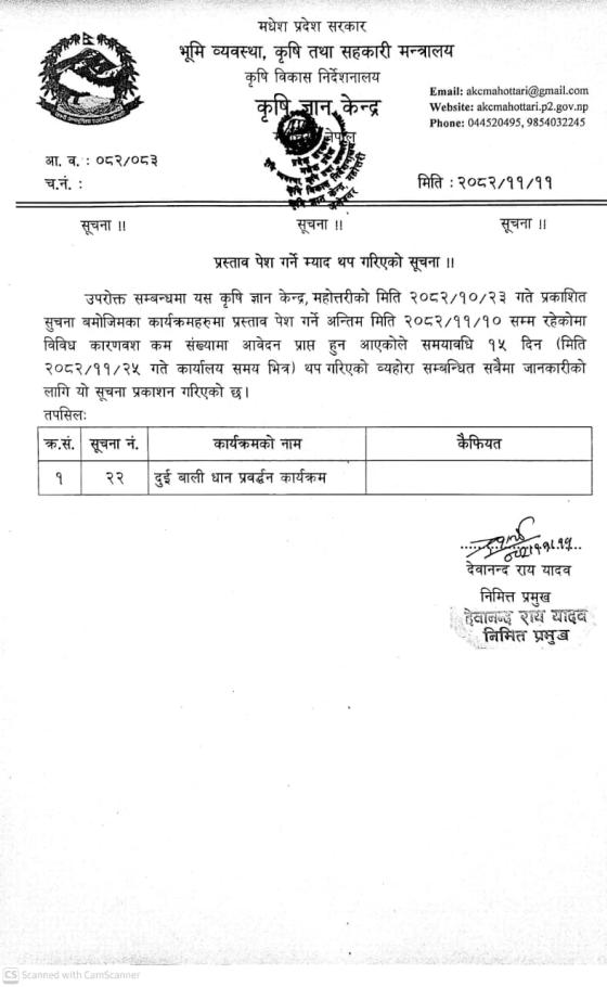 » प्रस्ताव पेश गर्ने म्याद थप गरिएको सूचना |