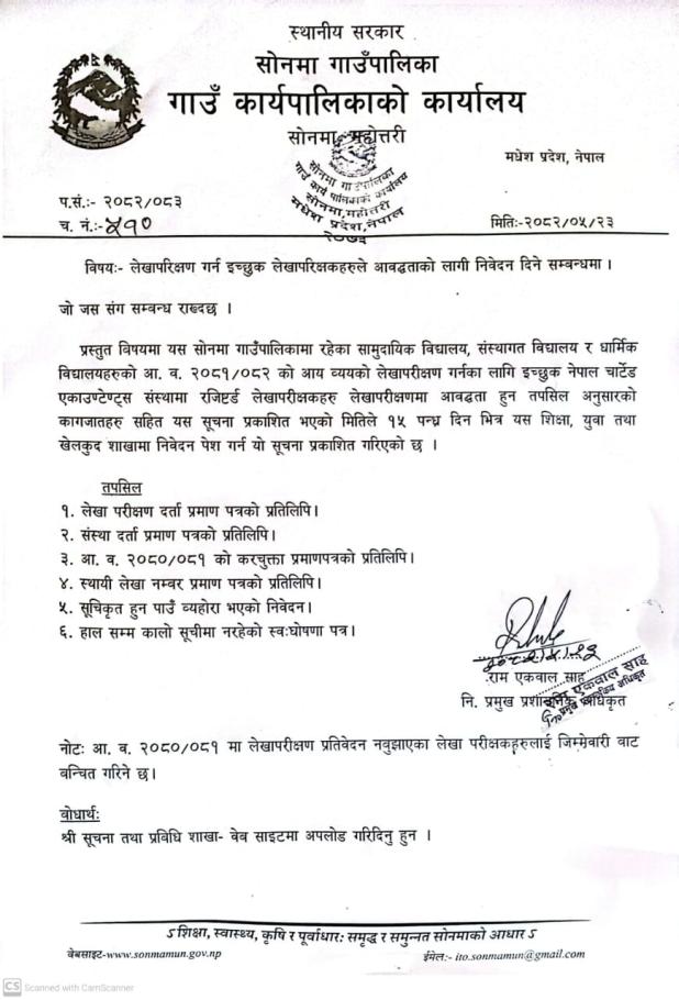 » लेखापरिक्षण गर्न इच्छुक लेखापरिक्षकहरुले आवद्धताको लागी निवेदन दिने सम्बन्धमा l