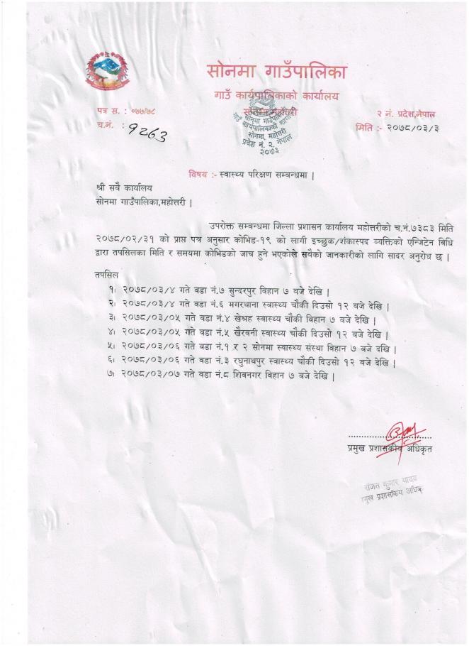 » स्वास्थ्य परिक्षण सम्बन्धमा