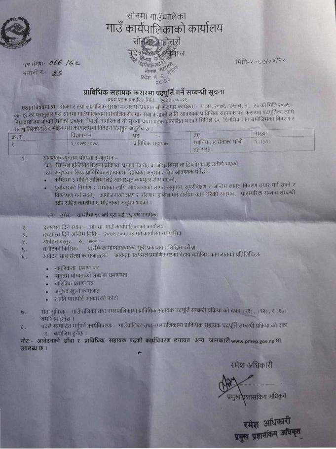 करारमा पदपुर्ती गर्ने सम्बन्धमा सुचना