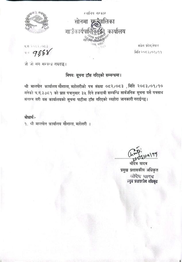 सूचना प्रसाशन गरिएको सम्बन्धमा |